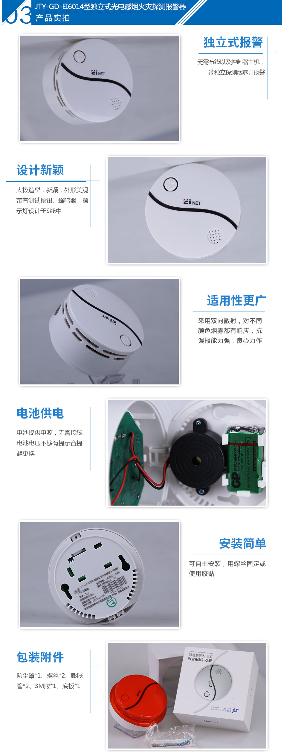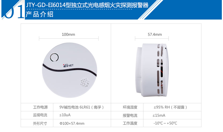 依愛JTY-GD-EI6014型獨(dú)立式光電感煙火災(zāi)探測報(bào)警器