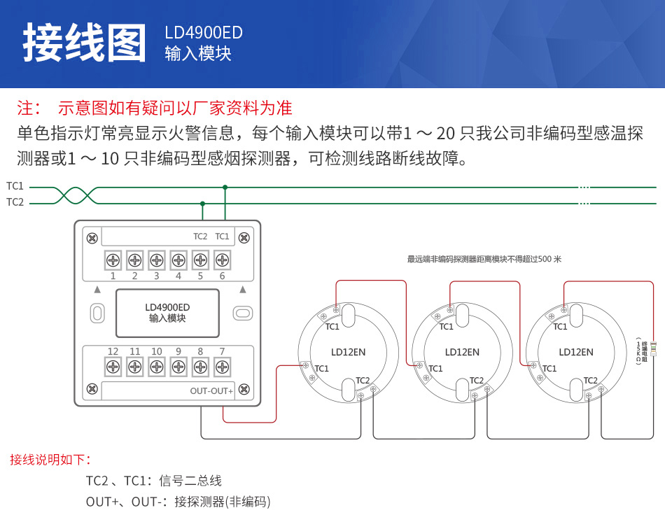 1、LD4900ED輸入模塊為二總線,無極性。