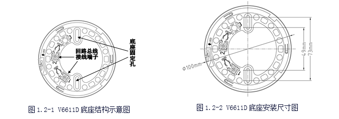 V6611D探測器底座結構簡單、安裝方便、結構件配合牢固;具有探測器防丟失結構設計。底座備有長圓形安裝定位孔,可適應于86H50型標準預埋盒及其它型號的預埋盒。