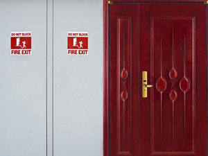 5、防火門的門執手,如必須用手轉動才能開啟,則可能在火災時因被烤燙而無法開門。為此宜用推桿式門鎖,只需手推或身體擠壓便可開啟。