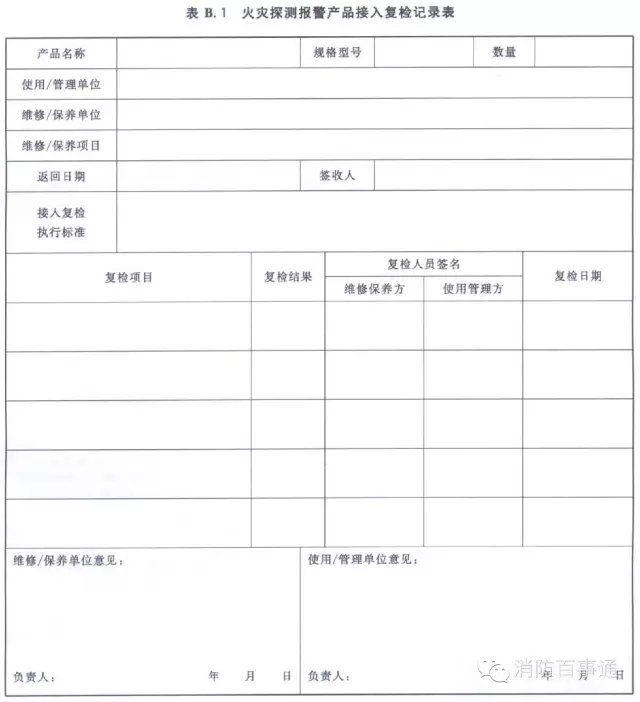 附錄B火災探測報警產(chǎn)品接入復檢記錄表