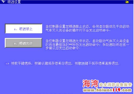 在設(shè)置里面進入“6、噴灑設(shè)置”界面,輸入氣體操作密碼及更高級別密碼解鎖后,可將控制器設(shè)置為噴灑禁止或噴灑允許狀態(tài)。